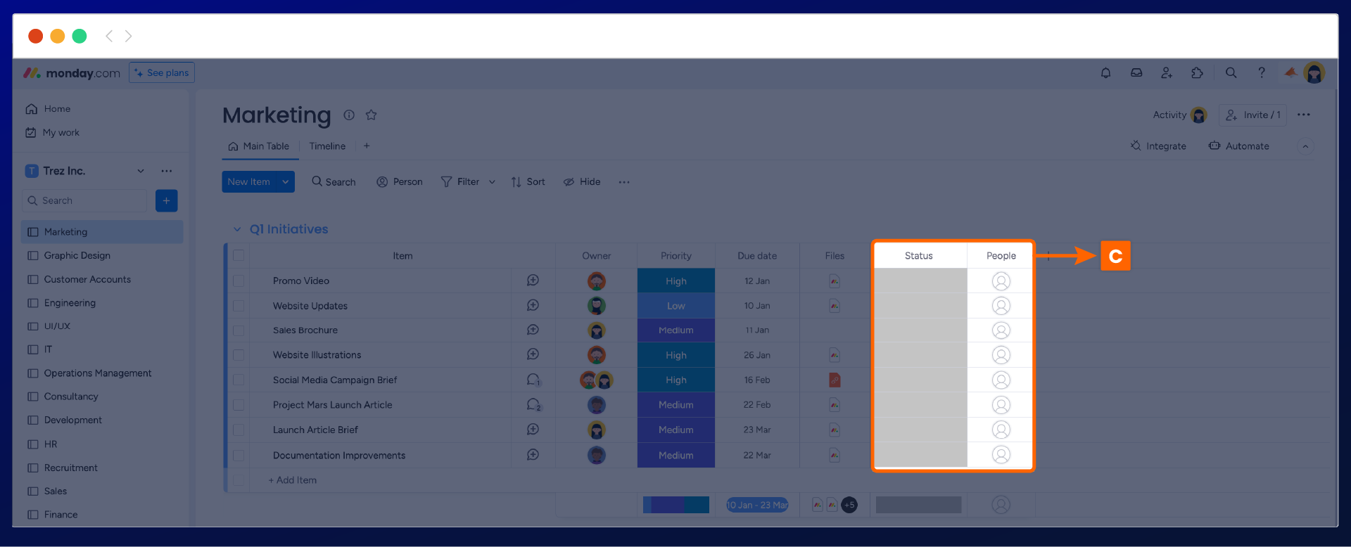 Once you have selected ‘create new column’ the approval status and approver columns will be added to your main monday.com board (C).