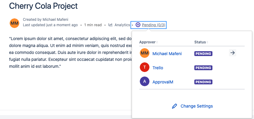 By using Approvals for Confluence, Elliot has a solution that can help meet this obligation and get the approvals he requires.