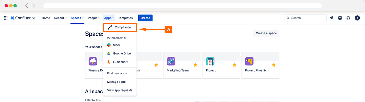 To access Bulk Classify, start by navigating to Apps in the top navigation bar and then clicking Compliance (A).