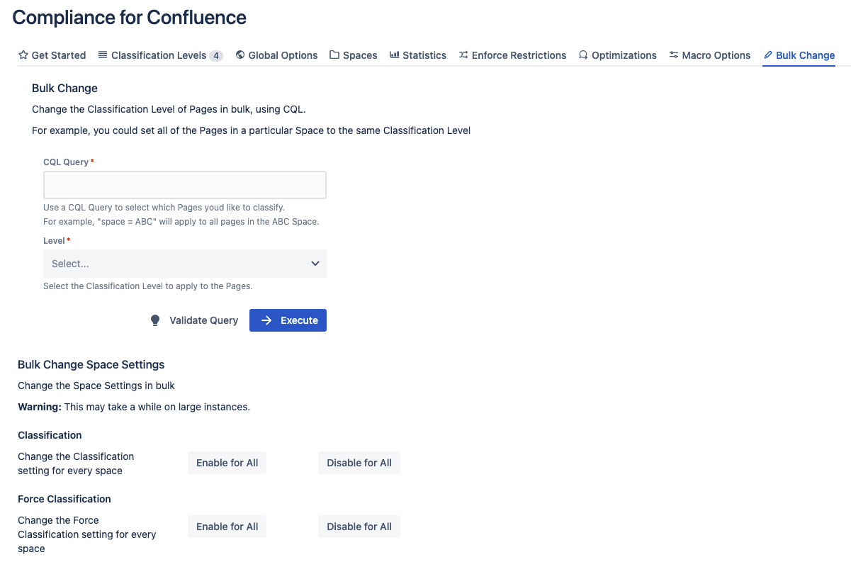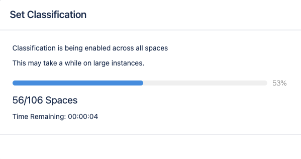 Moved the “Toggle all spaces feature” for the classification and force classification setting to the bulk change tab and added a dialog to show progress