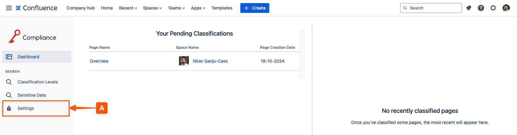 In the left-hand navigation bar, open Settings (A).