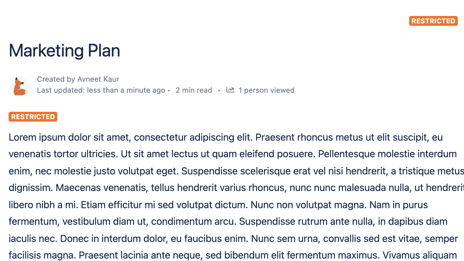 Once the macro has been added, you will see the classification level also appears in the main body of the page. This is now ready for exporting using the Confluence export feature.