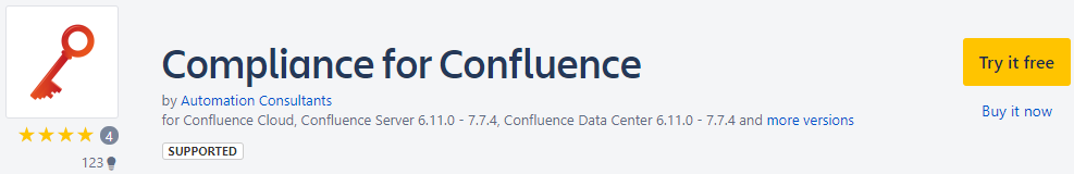 Search for Compliance for Confluence and click Try Now.