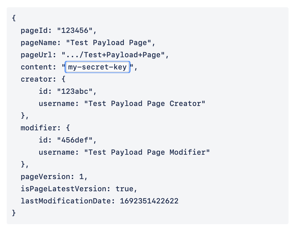The content field can be modified. For instance, input "my-secret-key" if it's known sensitive data your API should detect. This helps ensure your API will appropriately detect and respond during actual scans. During a real sensitive data scan the content field will contain the body of the page being scanned.