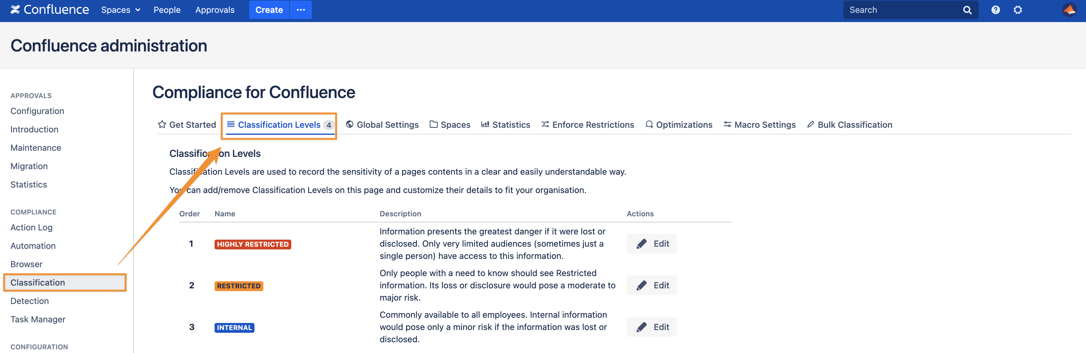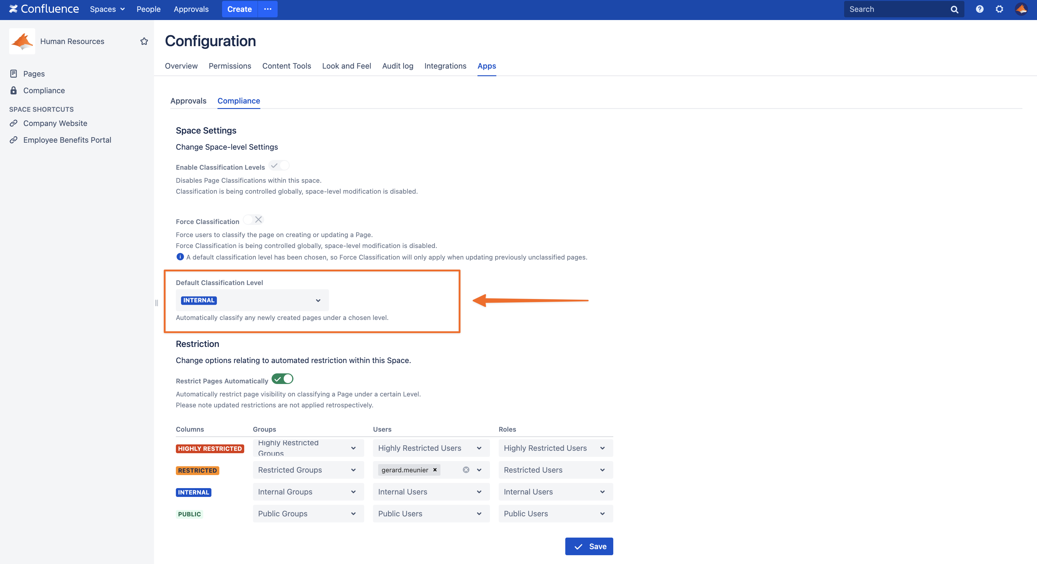 Important: Using default classification will override the Force Classification feature in Compliance for Confluence.