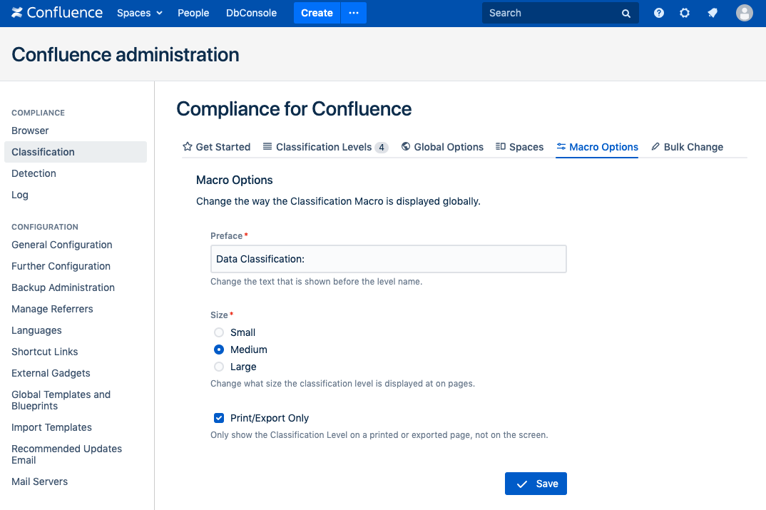 The macro can be configured at Settings > Compliance Configuration > Classification > Macro Options