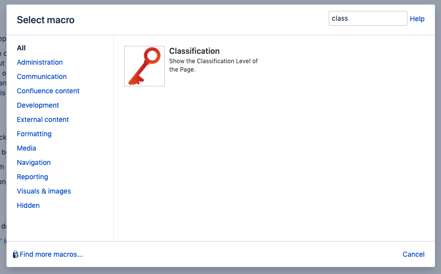 To do this, simply add the macro add the macro in the section of the page where you want the classification level to be displayed.