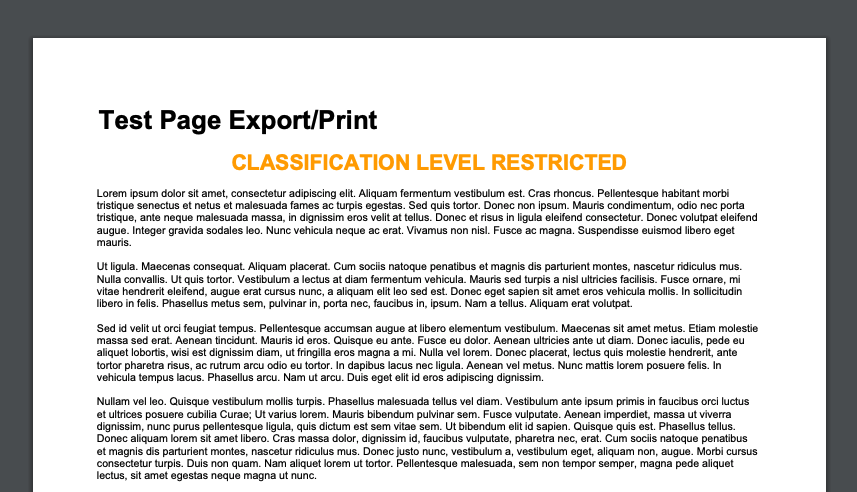 If you are exporting or printing a document, you can add the classification level to the document so it’s clear for readers if this document is restricted or not.