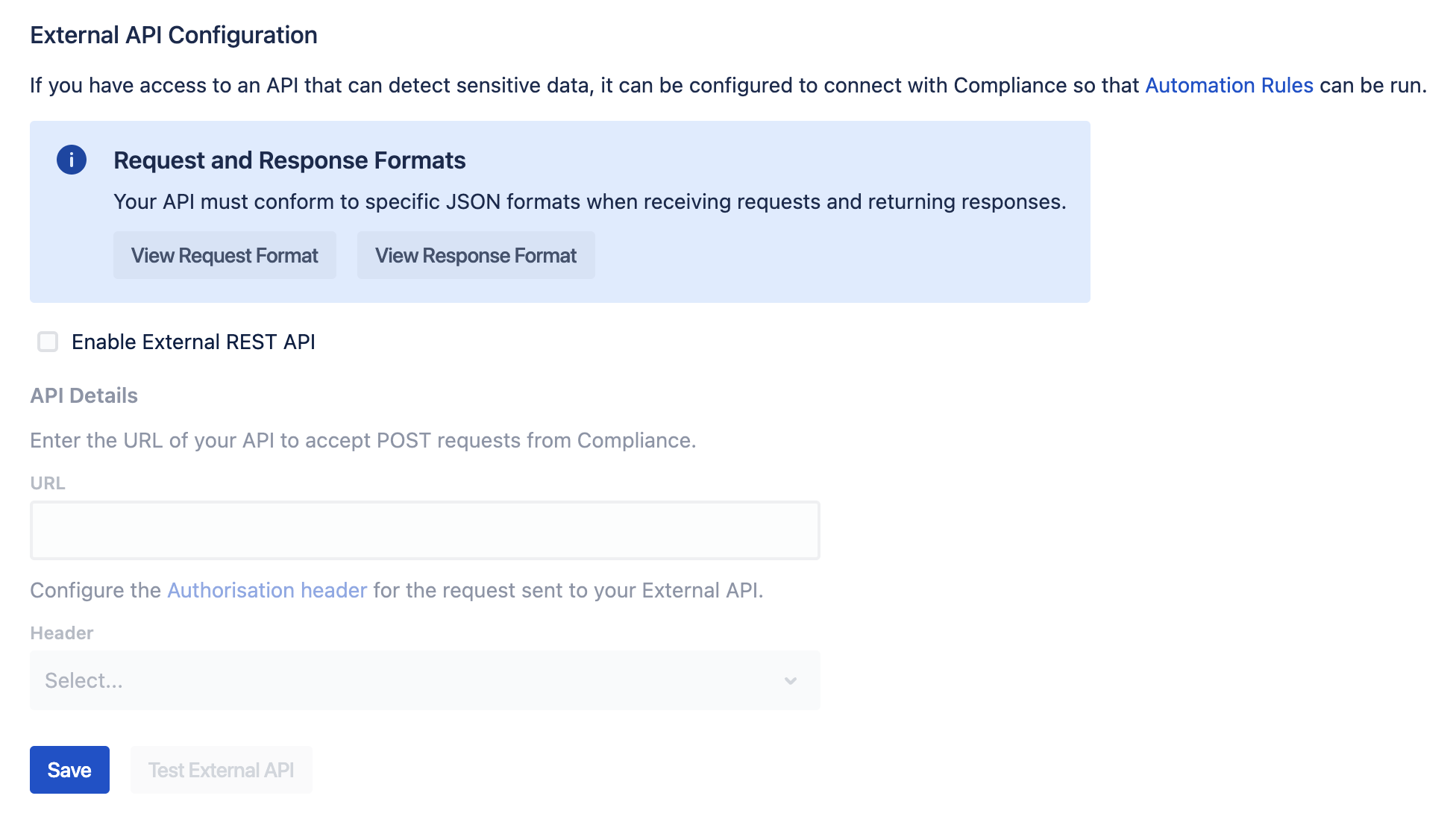 Response format: Click View Response Format to see what Compliance for Confluence expects in response from your API.