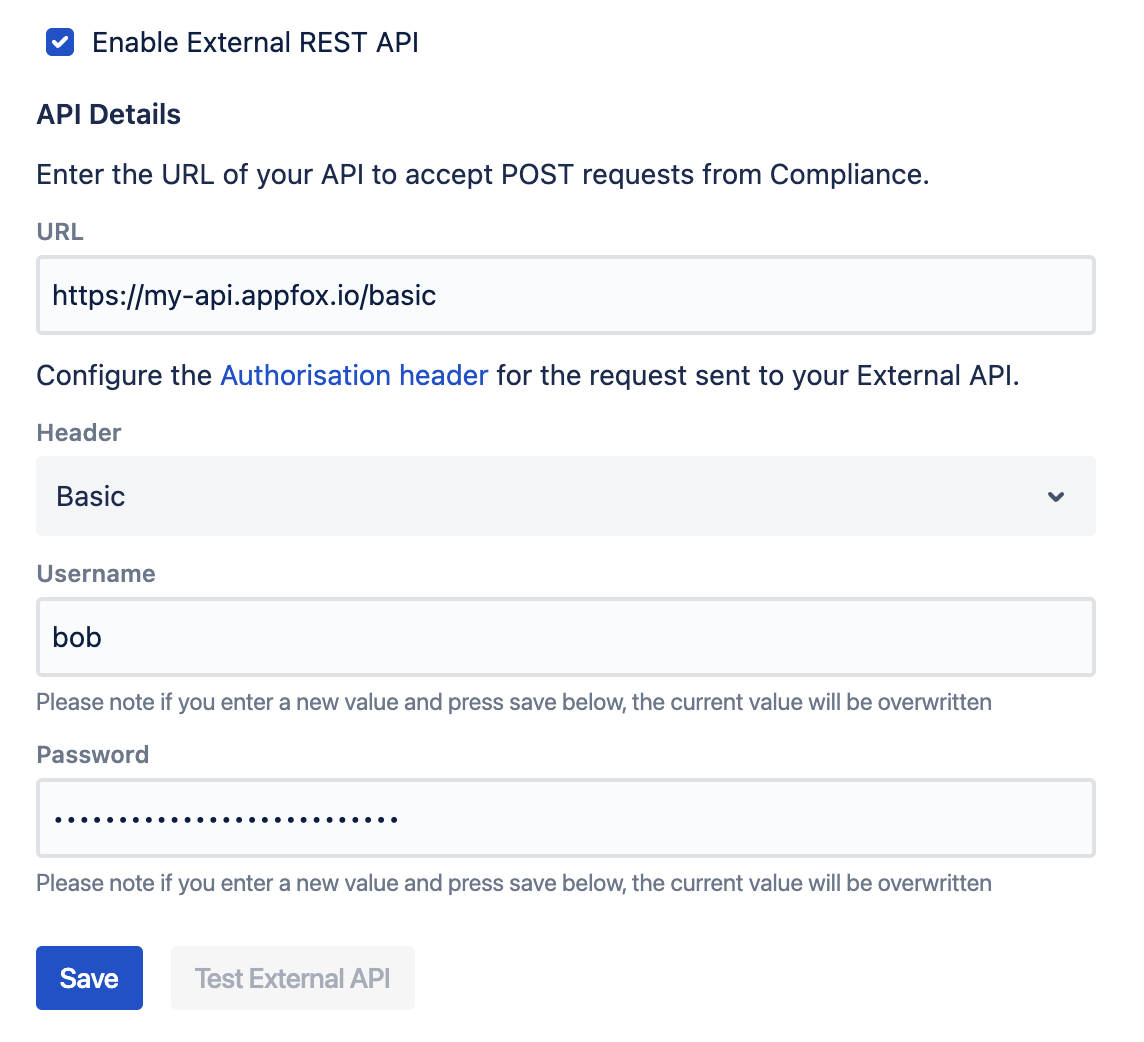 Once this feature is enabled, Compliance will send Confluence page data to the External REST API you configure.