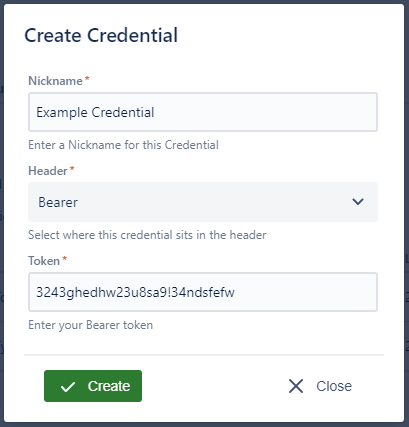 When creating a Bearer credential you have this screen: