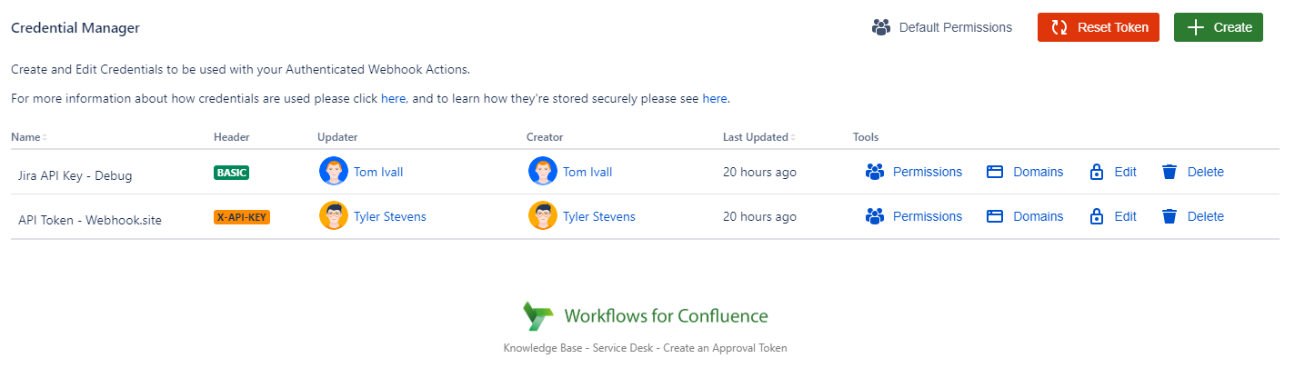 Admin Settings: Admin Cog > Configuration (Workflows for Confluence) > Credentials
