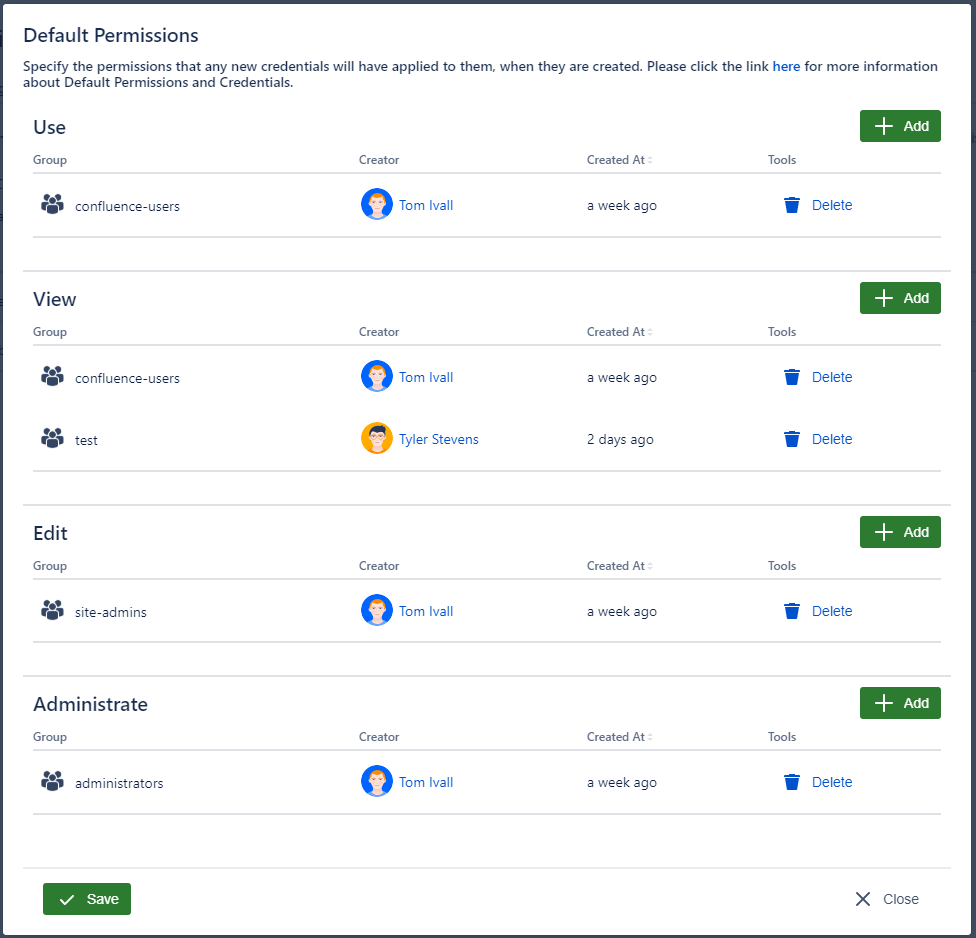 For both the Global Credentials and the Space Credentials, Admins have the ability to set the default permissions each new Credential will be assigned.