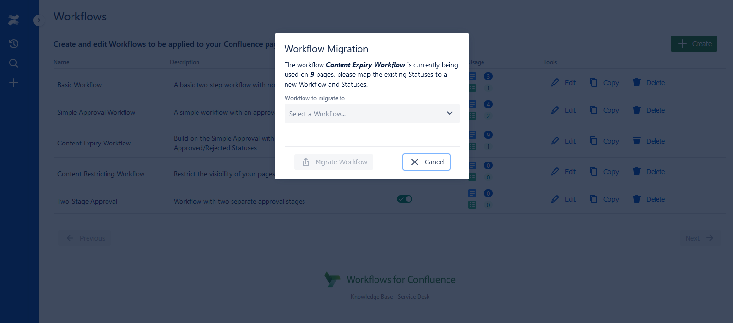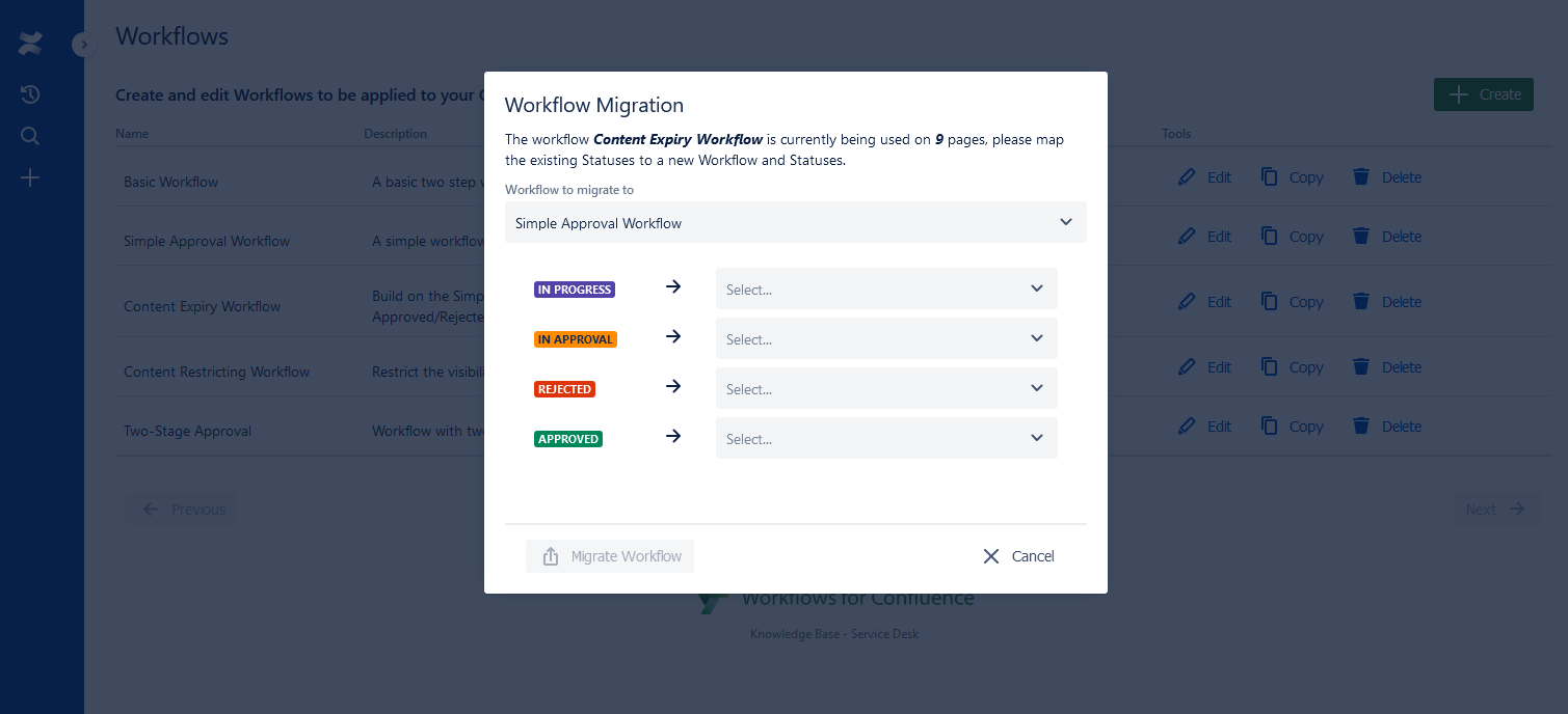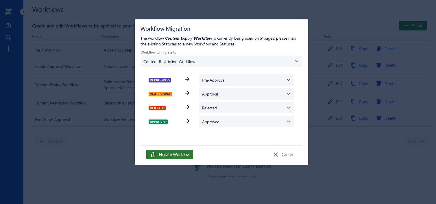 The Migrate Workflow dialog will appear like below: