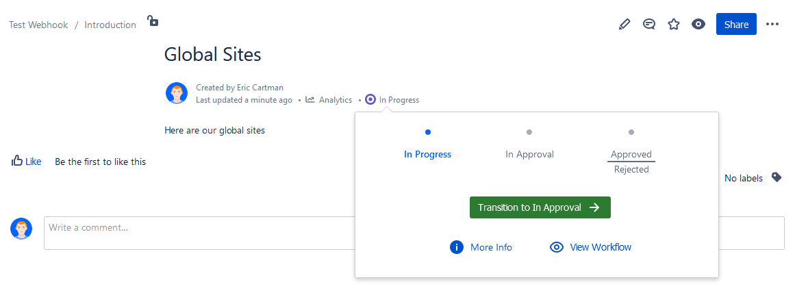 Once a Workflow is active on your page you can see how your content is progressing through the workflow stages.