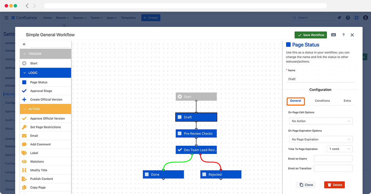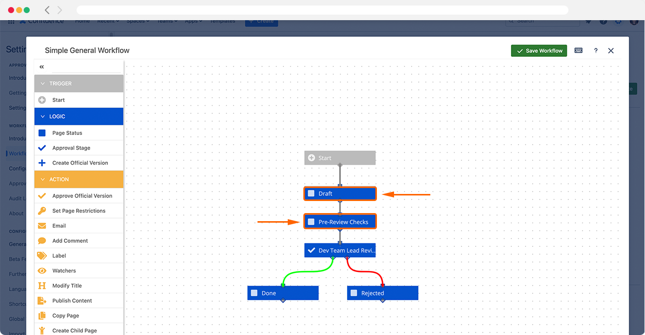 Statuses are the key part of Workflows for Confluence, and all your document workflows require at least one.