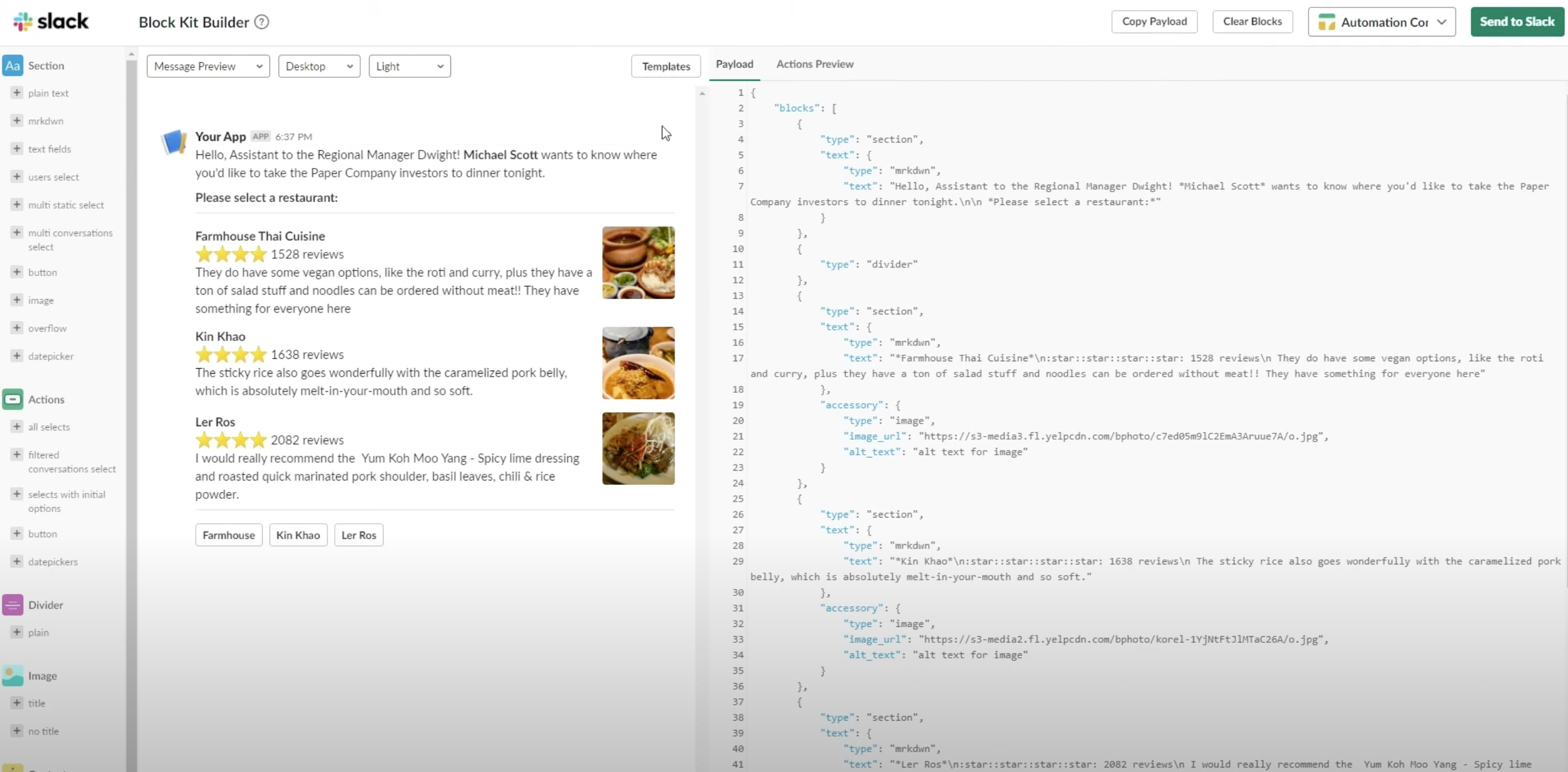 If you want to create your own JSON payload (you can style the Slack messages really nicely using this tool)