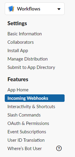 Once created select Incoming Webhooks