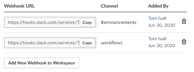 Select Add New Webhook to Workspace