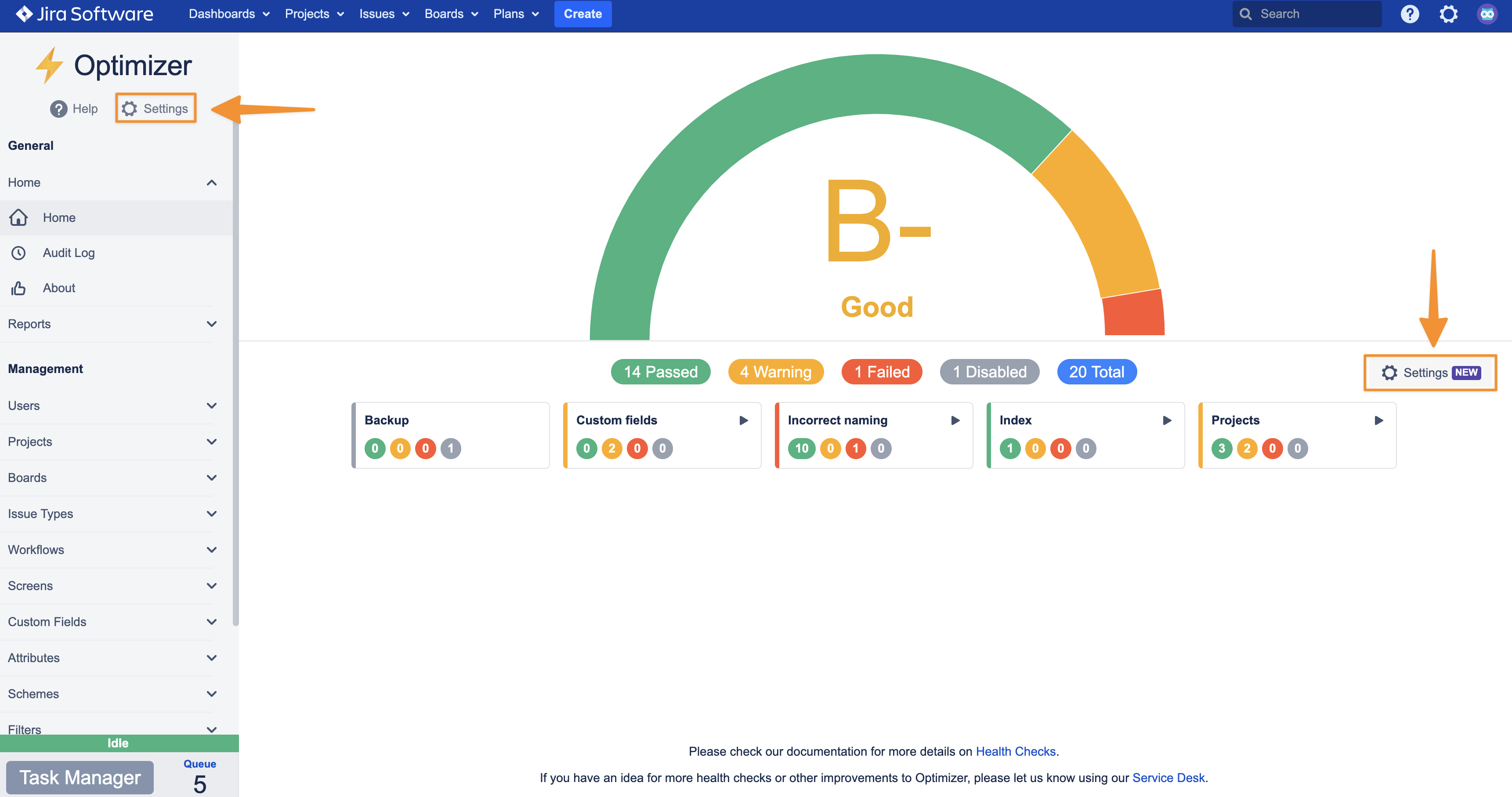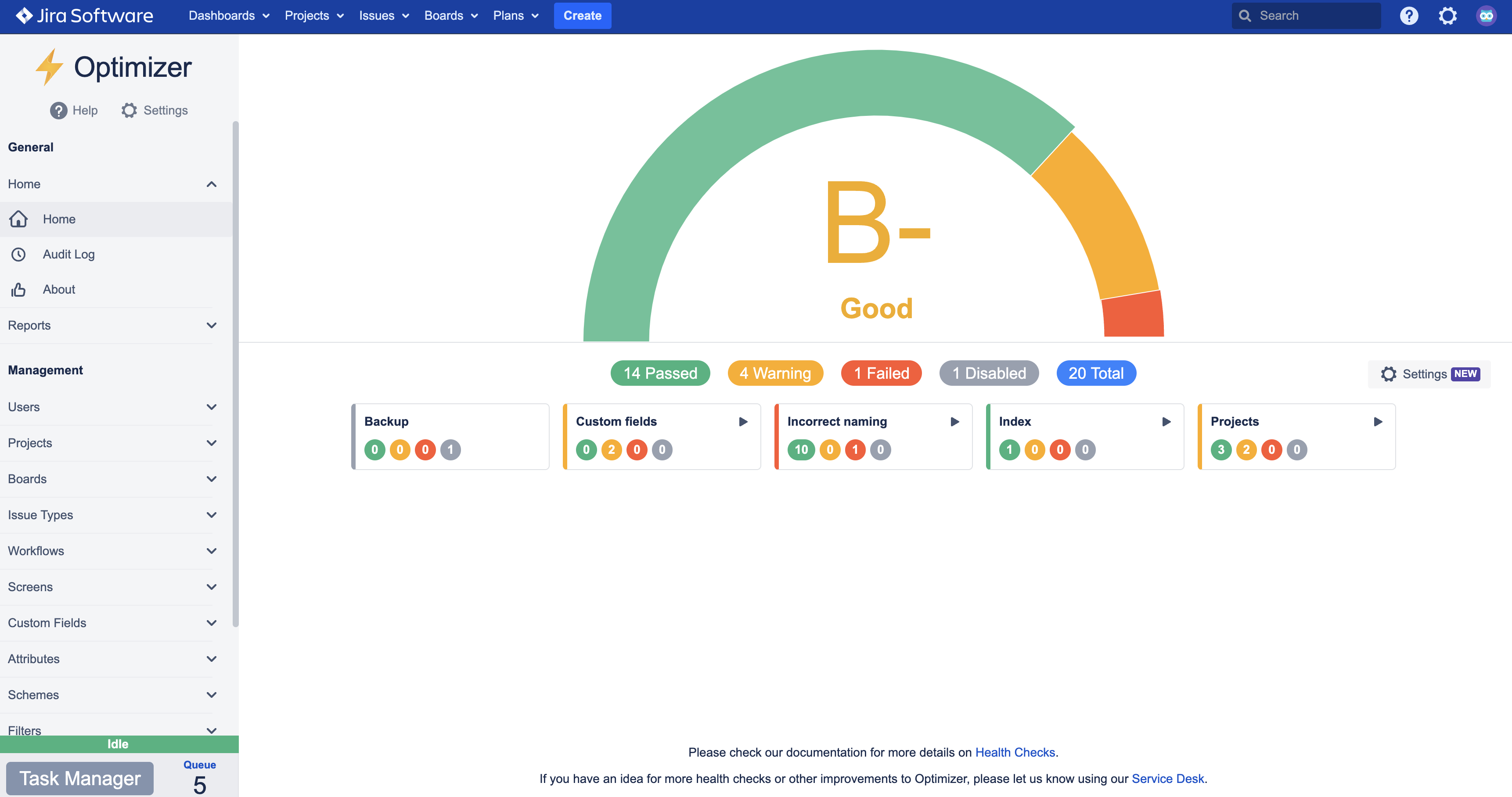 Health Checks in Optimizer for Jira