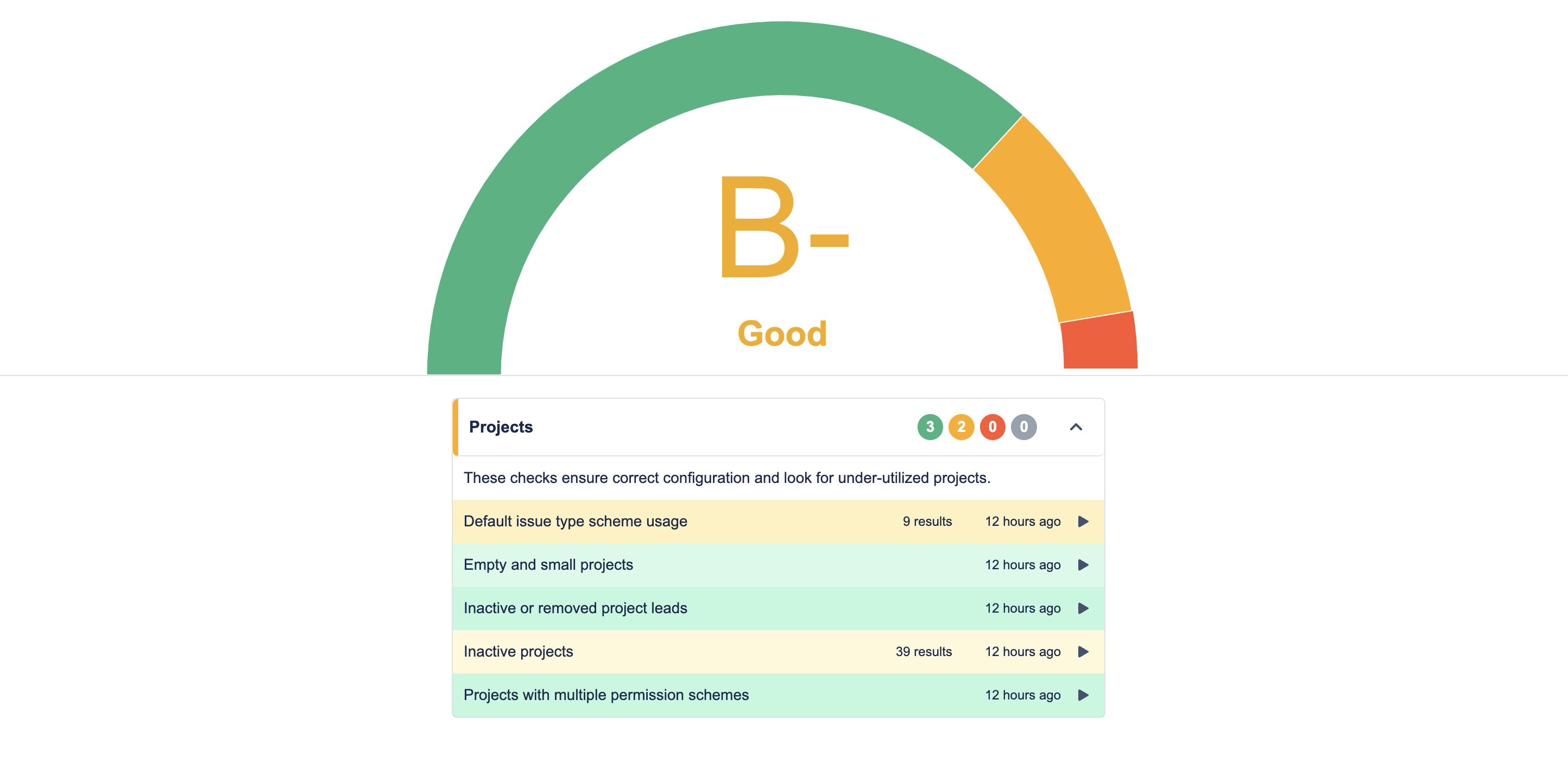 The Projects Health Checks ensure that the projects in your Jira instance are correctly configured and utilized.