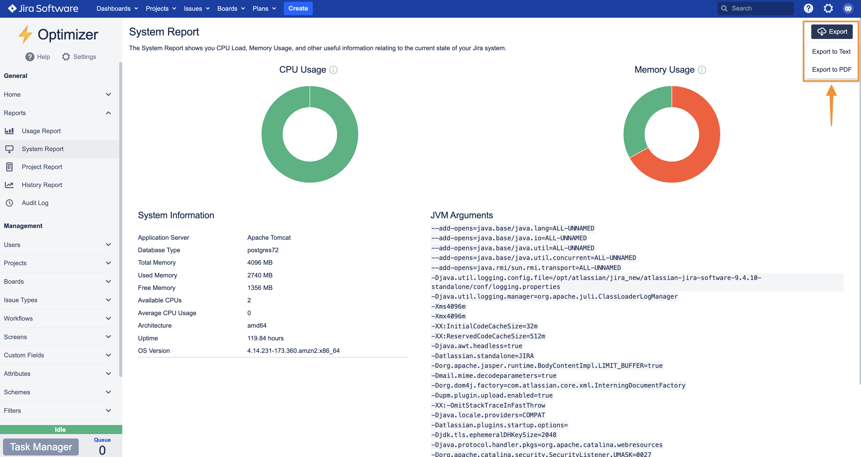 The reporting capability of Optimizer gives you an overview of many in-depth details about your Jira instance and the Optimizer’s usage.