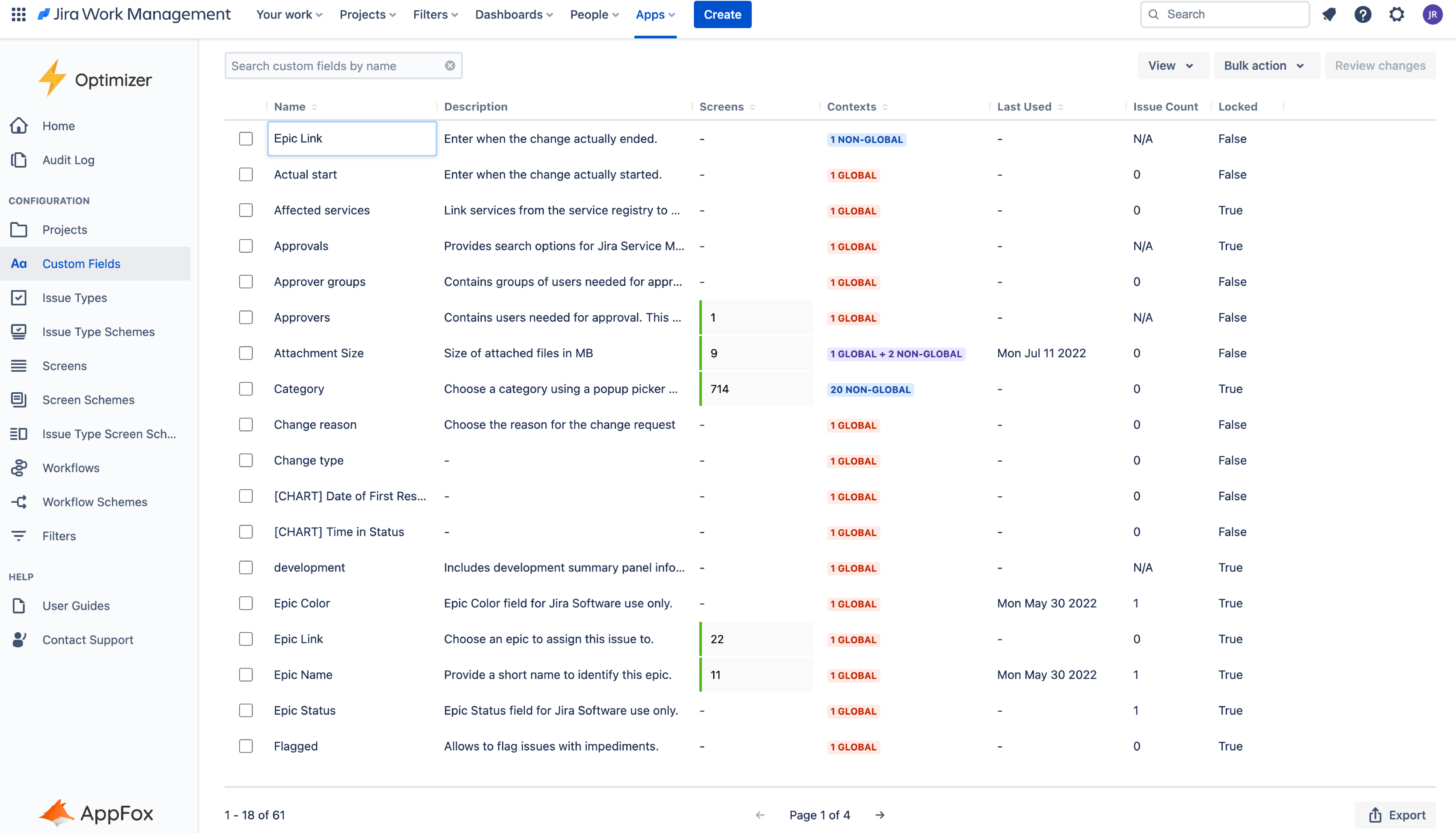 For each Jira object and configuration, Optimizer contains a Smart Table that displays detailed information relating to these objects in your instance. This information is updated in real time, so it’s an accurate picture of the current situation in your Jira instance.