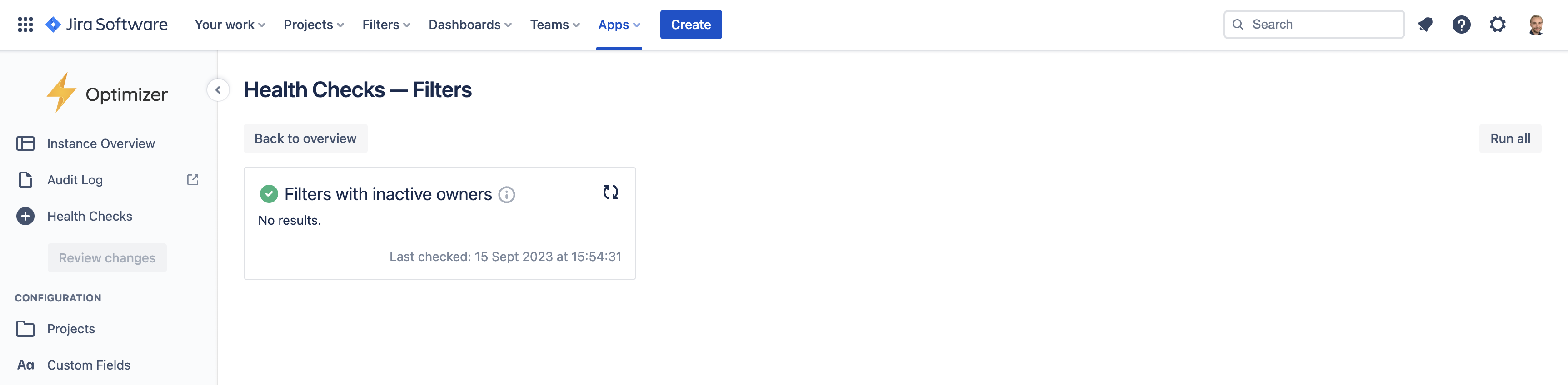 You can easily view which Filters have inactive owners using the Health Checks in Optimizer for Jira.