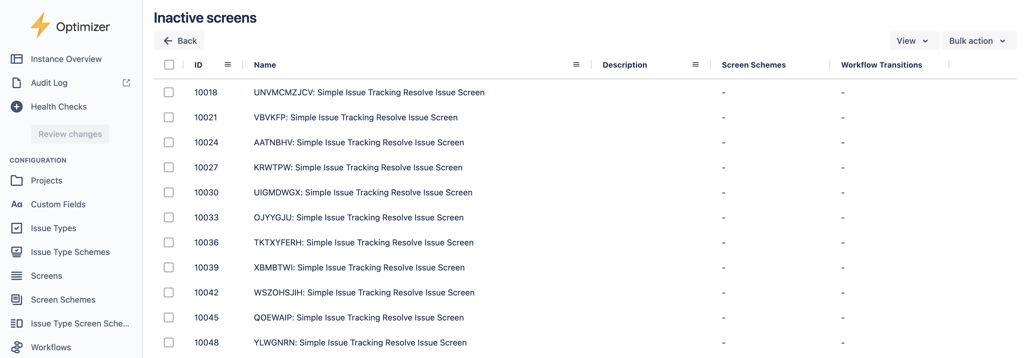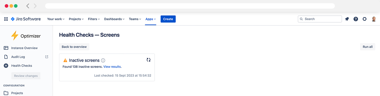 The ‘Inactive screens’ Health Check detects screens not used in any screen schemes or workflow transitions.