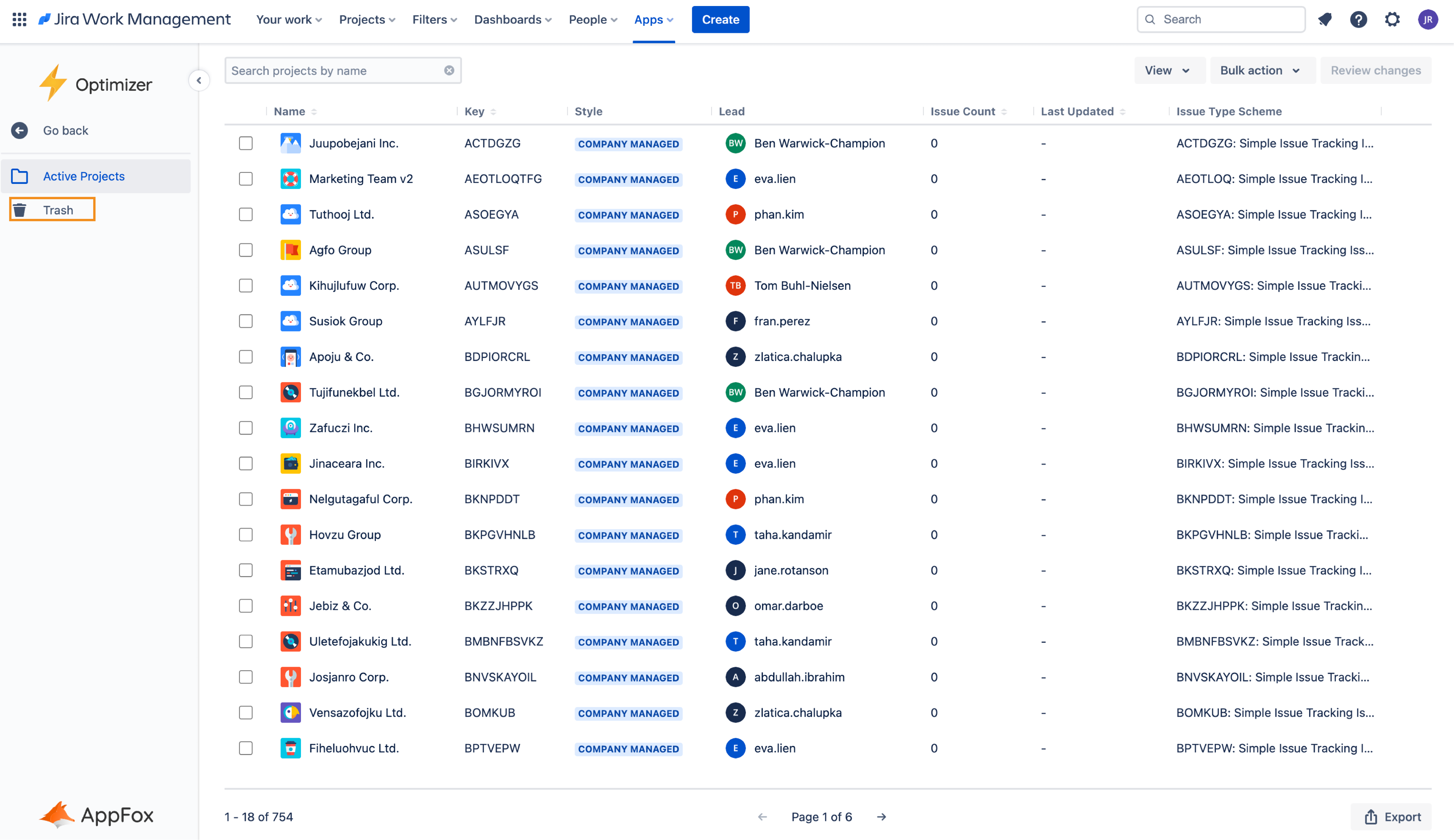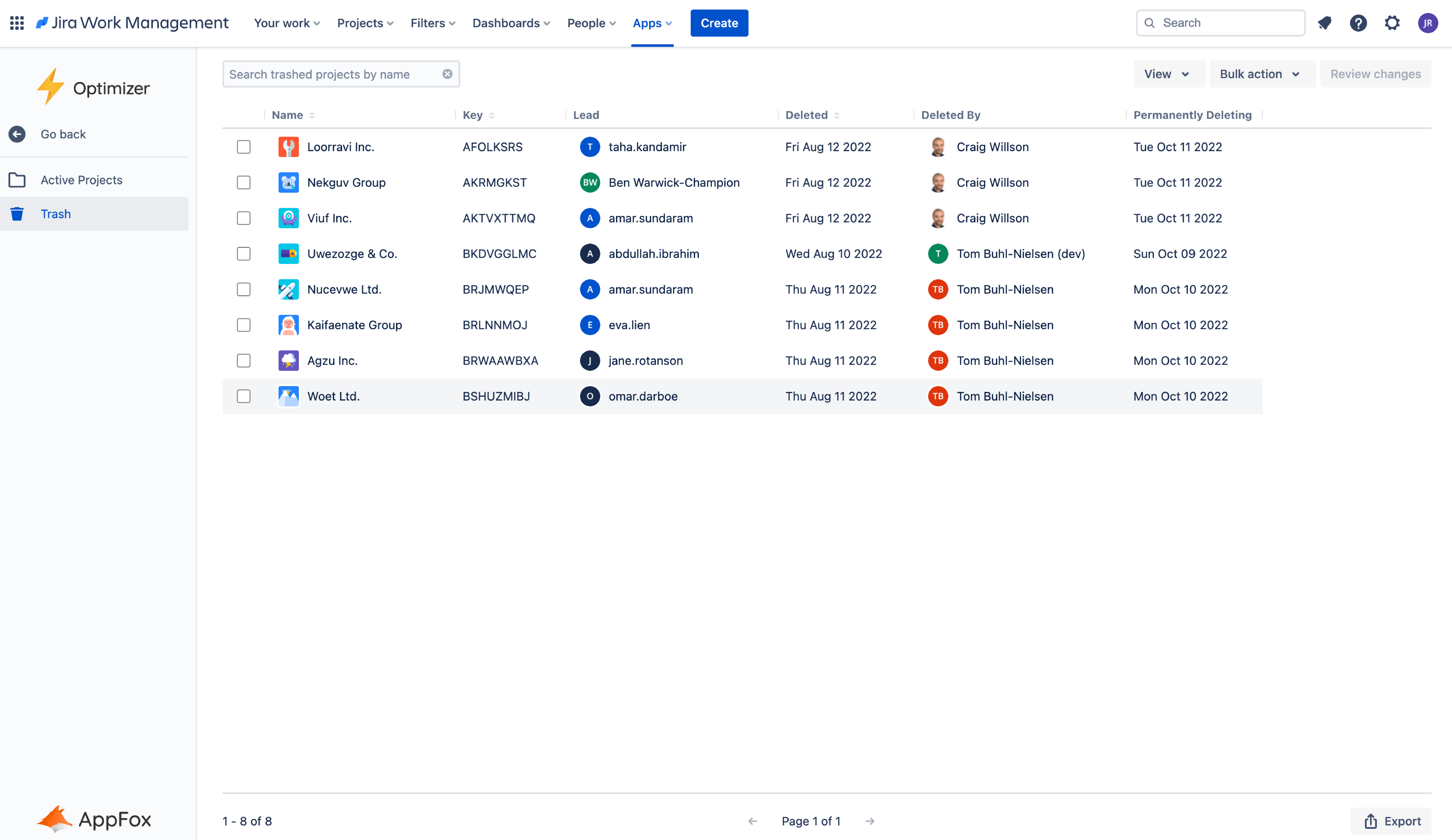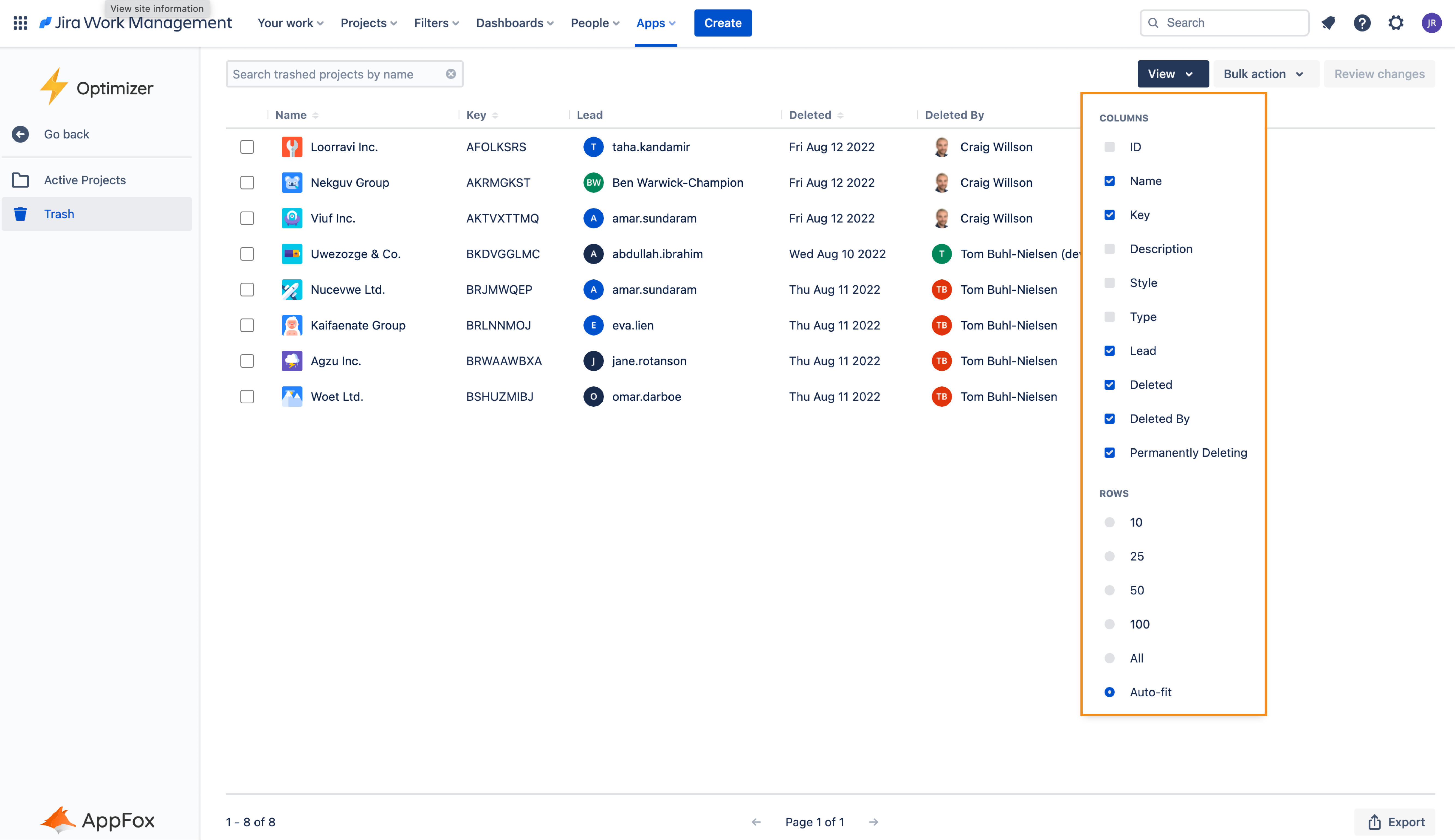 If you have added any Jira Projects to the Trash in Optimizer for Jira, you can easily view these in the Trashed Projects Smart Table.